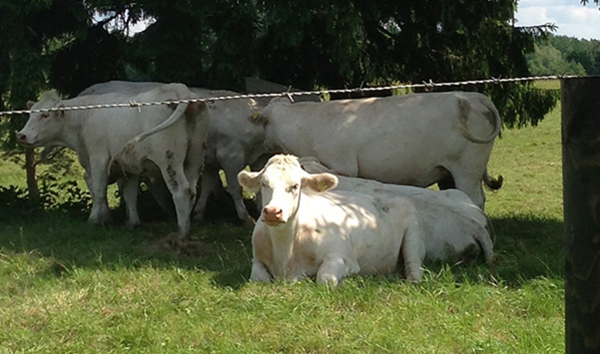 The Charolais herd is formed carefully. Around 50 various unrelated lines have been formed and each year artificial insemination is used on around 30 suckling cows.